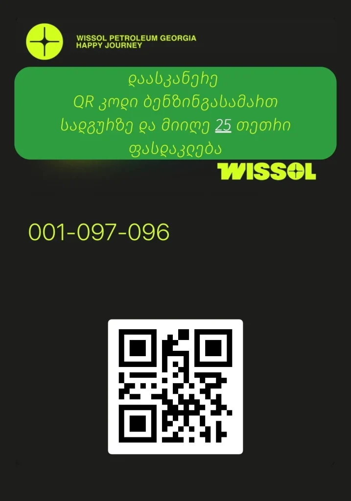 ფასდაკლების მისაღებად ციფრული ბარათი უნდა წარადგინო ვისოლის ბენზინგასამართ და თვითმომსახურების სადგურებზე.
